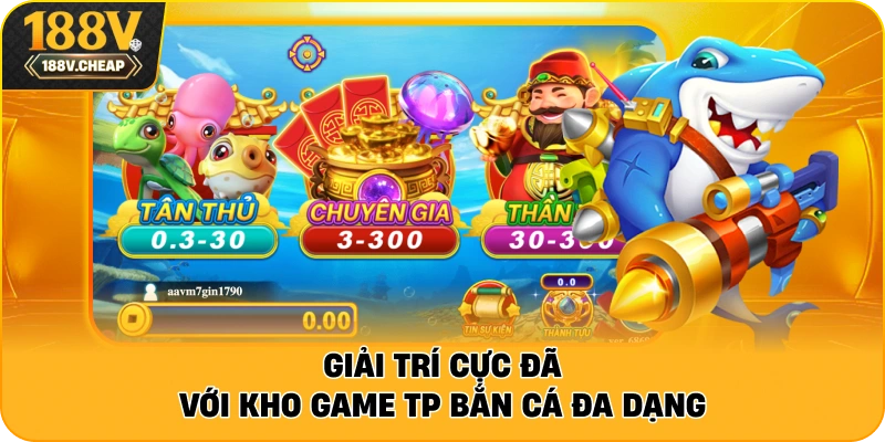 TP Bắn Cá tại 188V là sảnh game săn ngư trực tuyến hàng đầu, nổi bật với: